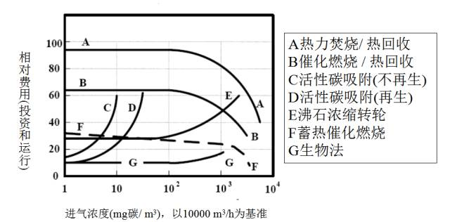 相較與直接燃燒法其輔助燃料費用低,二次污染物NOx生成量少,燃燒設備的體積較小,VOCs去除率較高;