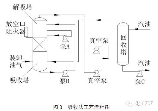 此工藝方法回收效率低,對于環保要求較高時,很難達到允許的油氣排放標準;設備占地空間大;能耗高;吸收劑消耗較大,需不斷補充。